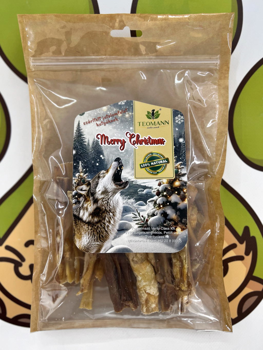 A fejbőr közepesen kemény rágcsálnivaló, akár kistestű kutyáknak is jó és tartós rágási élményt ad.