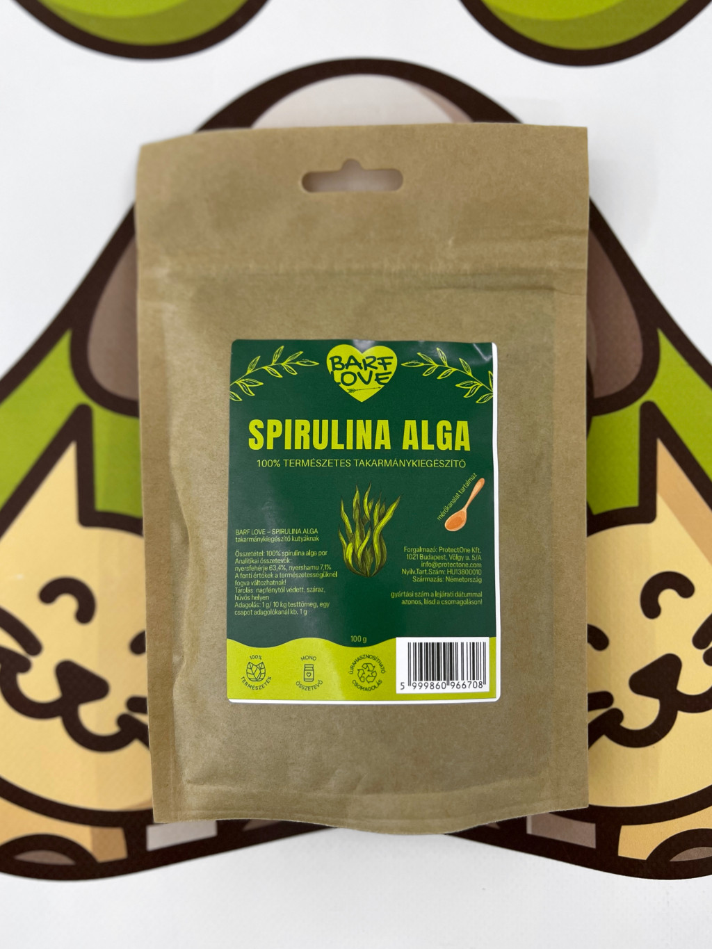 Kiválóan tiszta minőségű spirulina. Kutyák számára méregtelenítő, immunerősítő, bélflóra támogató hatással bír. Magas vitamin és ásványi anyag tartalommal rendelkezik, tavaszi,őszi-téli időszakokban, betegségek alatt és után, allergiás kutyáknak igencsak ajánljuk!