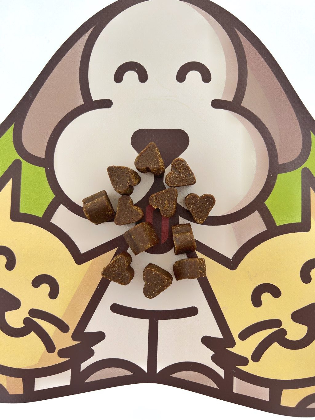 Összetétel: sörélesztő, burgonyafehérje, szárított almapor, kókuszzsír, tapioca liszt, lazac olaj, szentjánoskenyér, lecitin, lenmagpor, vitaminok, echinaceea, csipkebogyó.