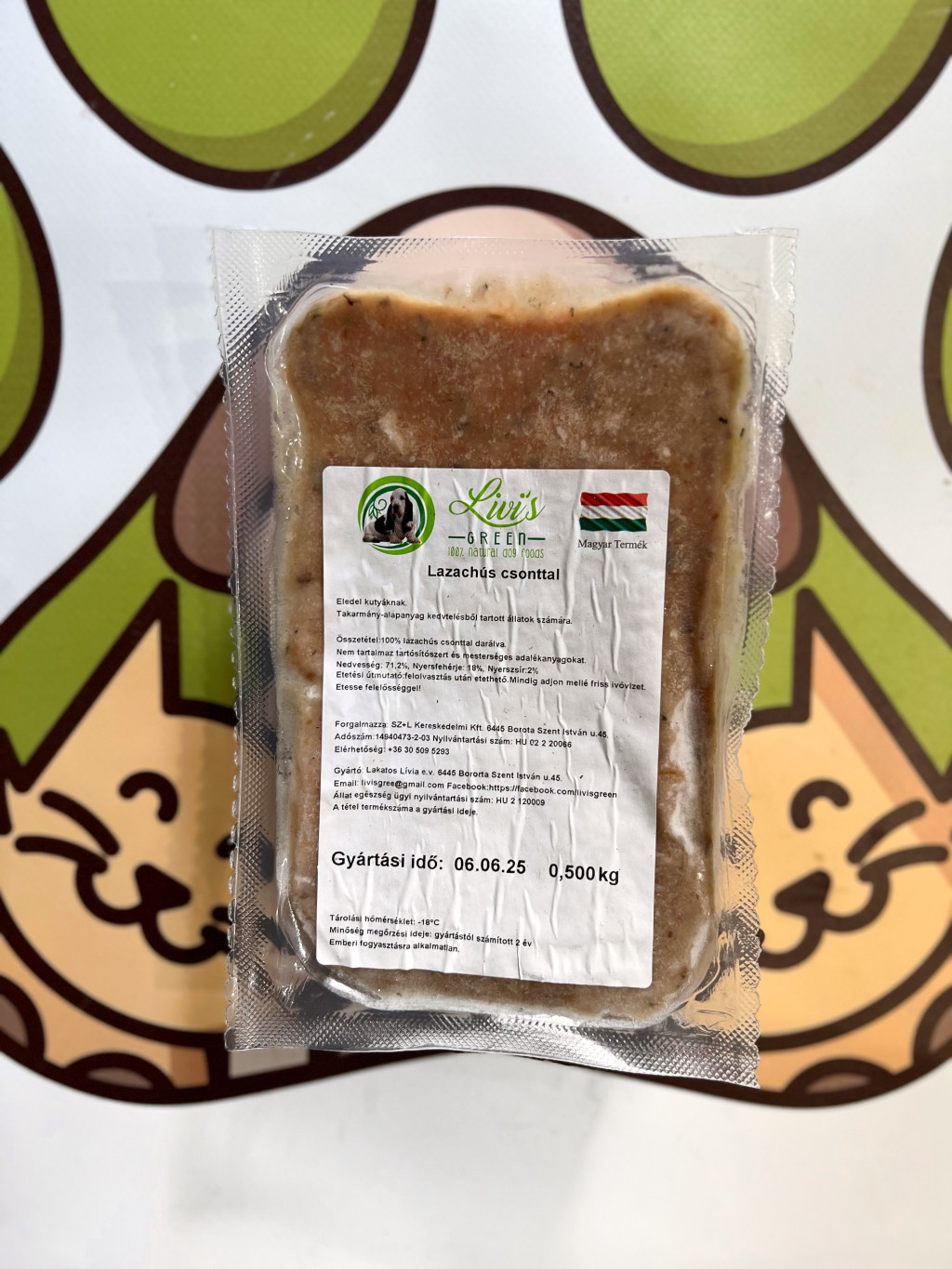 Csontos (szálkás) ám mégis biztonságos, mivel apróra van darálva. Minden méretű és fajtájú kutya számára bátran ajánljuk.