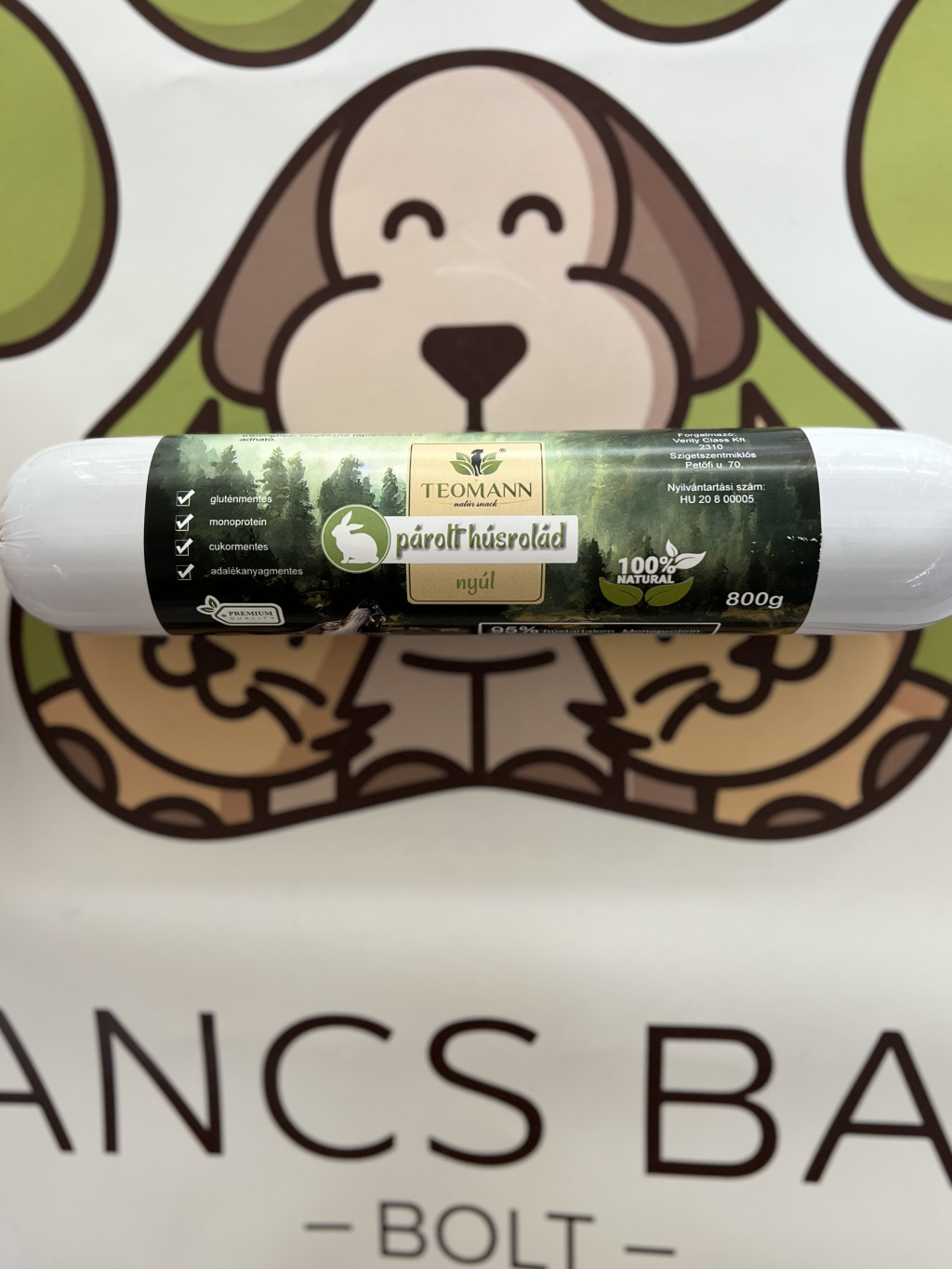 Összetétel: 95% nyúlhús belsőséggel, 4% rizs, 1% vitamin/ásványi anyag