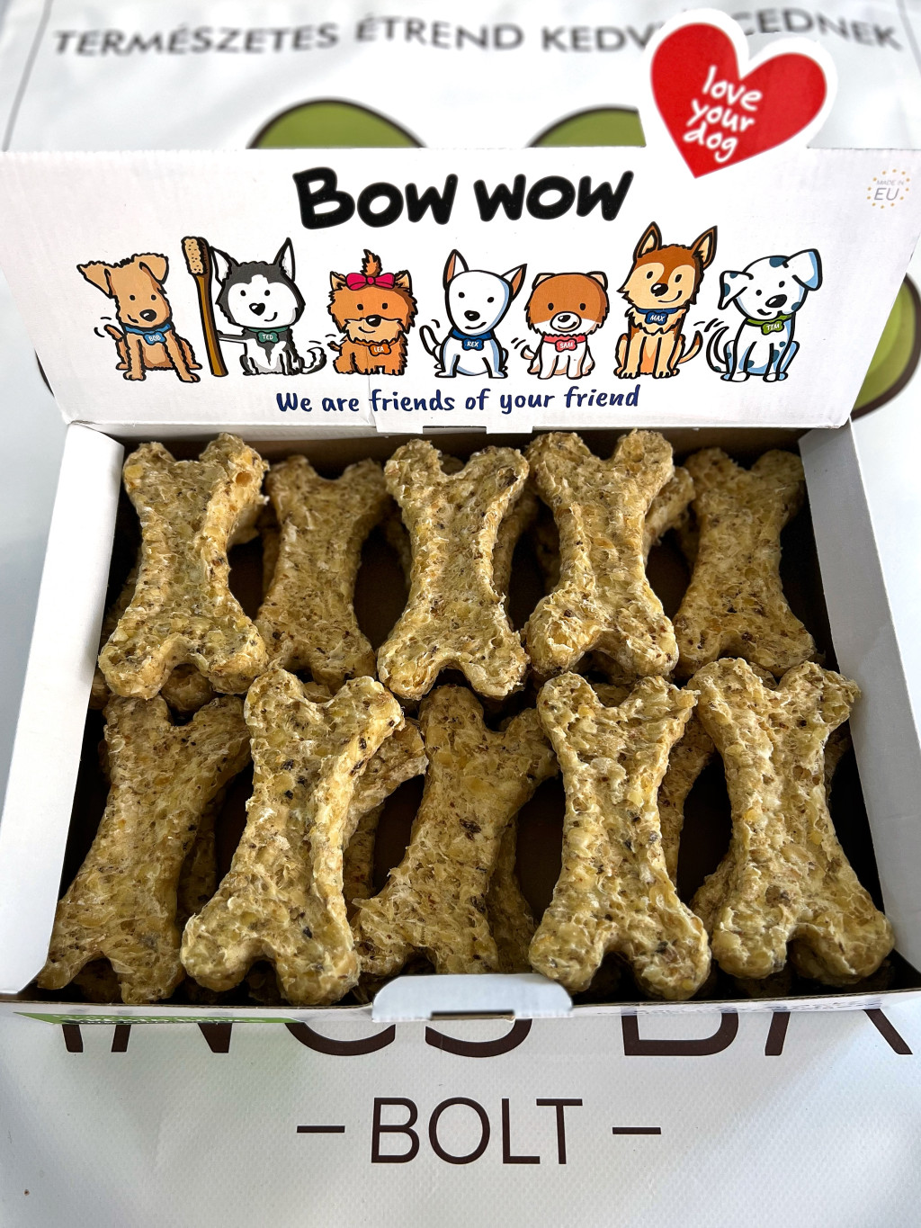 Összetétel: marhabőr 53,8%, marhakollagén 35%, marhapacal 10,7%, inulin (cikória) 0,5%, kalcium, csipkebogyó (80mg/kg), vörös áfonya (80mg/kg)